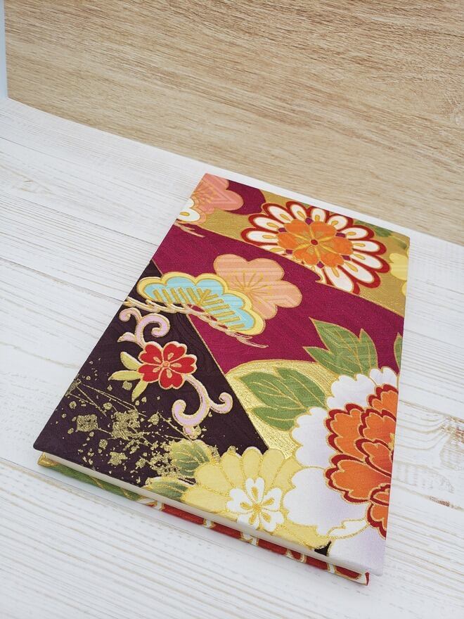 京友禅染の伝統技法で職人が染め上げたシルク100%(正絹)を表紙に使用しております。
